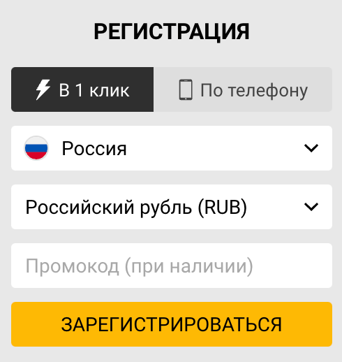 Второй способ подразумевает создание учетной записи буквально единственным нажатием курсора. Основные учетные данные будут созданы системой в автоматическом режиме. А пользователю останется лишь выбрать валюту, которая будет использоваться для ставок.
